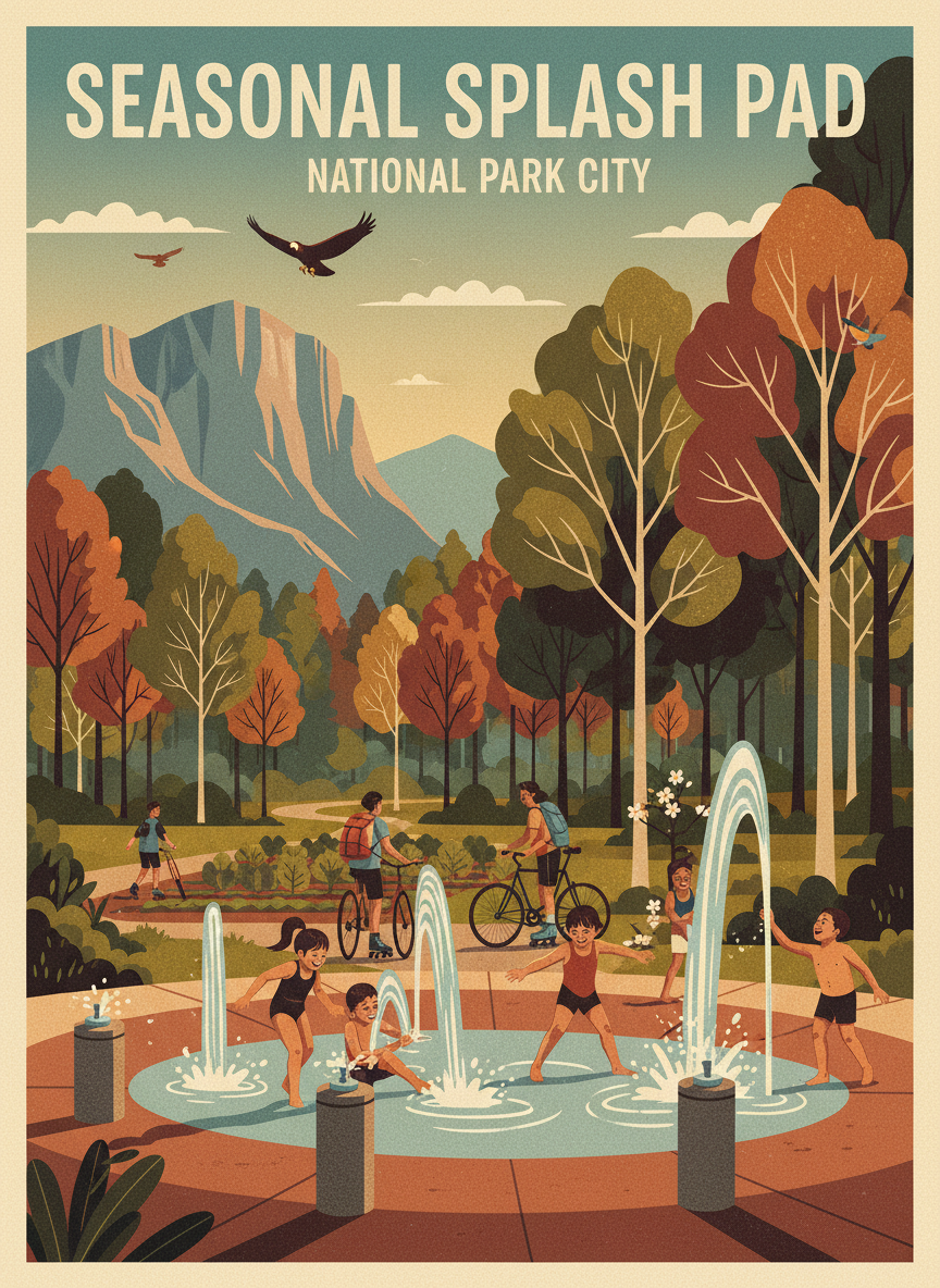 Install a seasonal splash pad at the Camp Jordan Greenway entrance, providing free water play for families during Chattanooga's hot summers. The splash pad would use recirculating water with ground-level jets and spray features, activated by push buttons to conserve water. Camp Jordan is a major recreational hub but has no water play feature. Families visiting the greenway in summer — especially those biking or walking — need a way to cool down. A splash pad at the entrance would make Camp Jordan a destination for young families and complement the existing playground and sports fields.