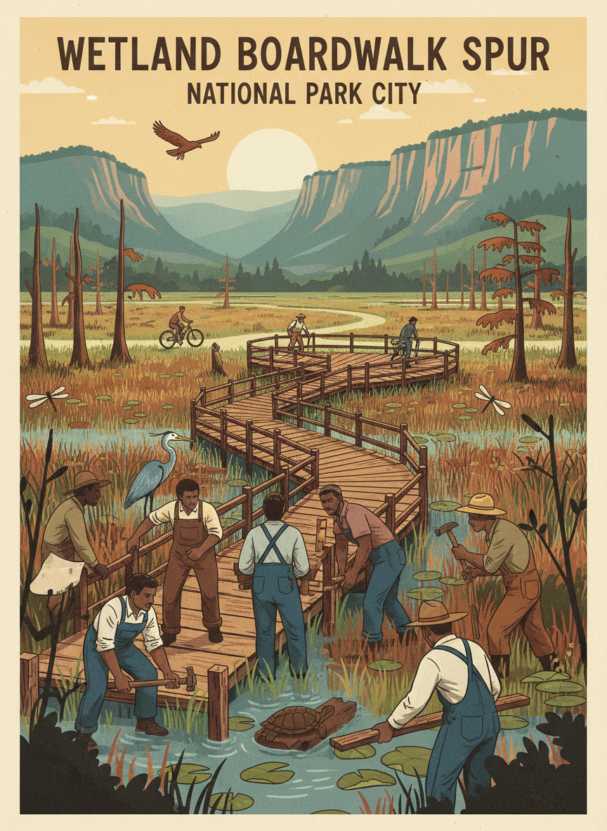 Build a short boardwalk spur off the South Chickamauga Greenway near 17th Street into the adjacent wetlands, creating an immersive nature observation point. The boardwalk would extend about 200 feet into the wetland with an observation platform at the end overlooking the marsh habitat. The wetlands along South Chick Creek are ecologically rich but invisible from the greenway. A boardwalk spur would let trail users experience this hidden ecosystem — herons, turtles, dragonflies — without disturbing the habitat. It would serve as an outdoor classroom for nearby schools and a unique attraction on the greenway.