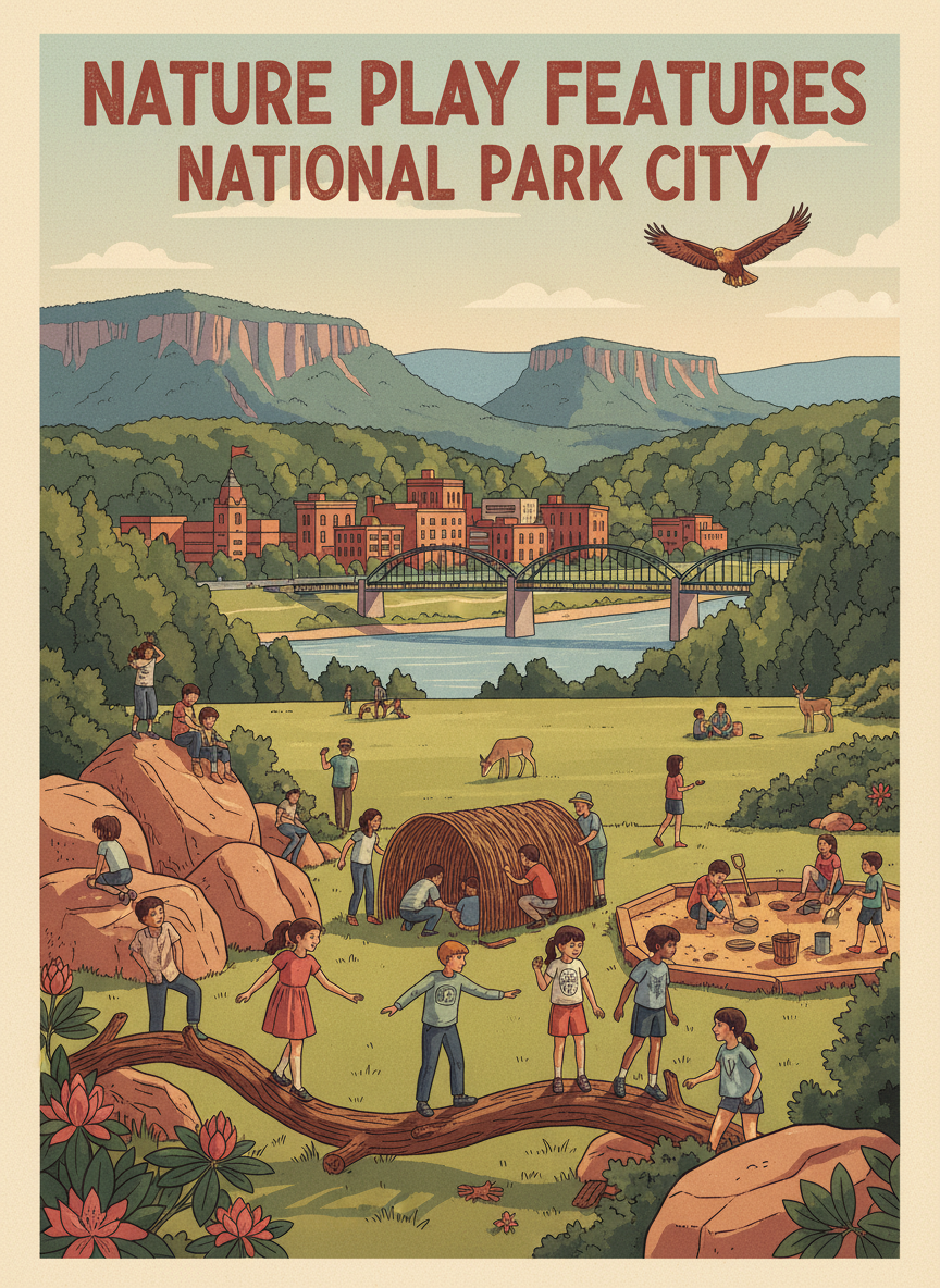Install nature play features at Renaissance Park — log balance beams, boulder scrambles, willow tunnels, and a sand dig area — creating a free-range play zone that complements the park's existing open space. Nature play encourages unstructured outdoor exploration and builds physical confidence in children. Renaissance Park has beautiful open fields and river views but limited play infrastructure beyond a basic playground. Nature play features are low-maintenance, blend with the landscape, and appeal to a wide age range from toddlers to preteens. They also align with the park's ecological character near the river.