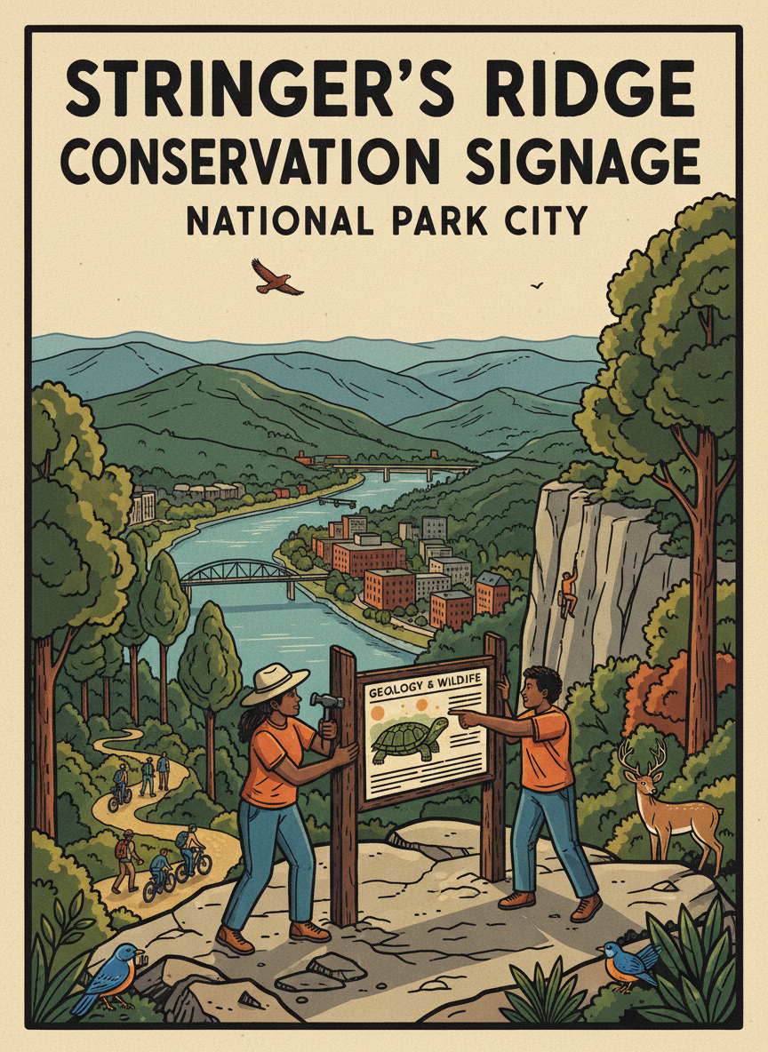 Install conservation education signage along the ridge edge trails on Stringer's Ridge, explaining the preserve's unique geology, plant communities, and wildlife. The signs would be placed at five viewpoints where hikers naturally pause, turning rest stops into learning moments. Stringer's Ridge is a rare urban nature preserve with diverse habitats, but most visitors experience it as a generic hiking trail. Interpretive signage would deepen appreciation for the preserve's ecology — the cedar glades, the spring wildflowers, the migratory birds that use the ridge as a flyway corridor — and build support for its long-term conservation.