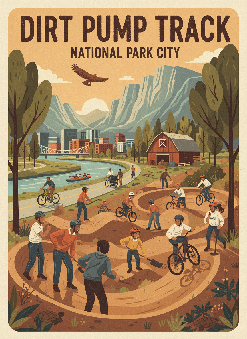 Build a dirt pump track beside the South Chickamauga Greenway near Sterchi Farm, giving kids and adults a free, drop-in cycling and scooter course right on the trail network. Pump tracks are rolling circuits of bumps and berms that riders navigate without pedaling, building bike handling skills and confidence. Chattanooga has no public pump track despite a thriving cycling culture. Placing one on the greenway means families can ride to it, use it, and continue their greenway trip — no car required. The dirt construction keeps costs low and allows community build days that create ownership.